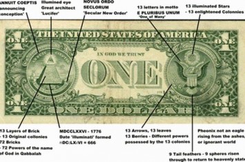 ... Di depan ada simbol-simbol illuminati, di belakang ada simbol-simbol illuminati; Novus Ordo Seclorum, 1 mata Dajjal, bintang Daud, itu seperti susuk kalau kita lihat jadi cantik, harus punya